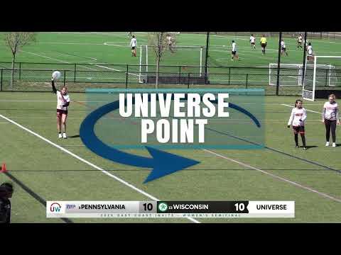Watch UPenn and Wisconsin face off in the intense Universe Point disc golf tournament. Witness strategic plays, exceptional skills, and thrilling competition from these talented players.